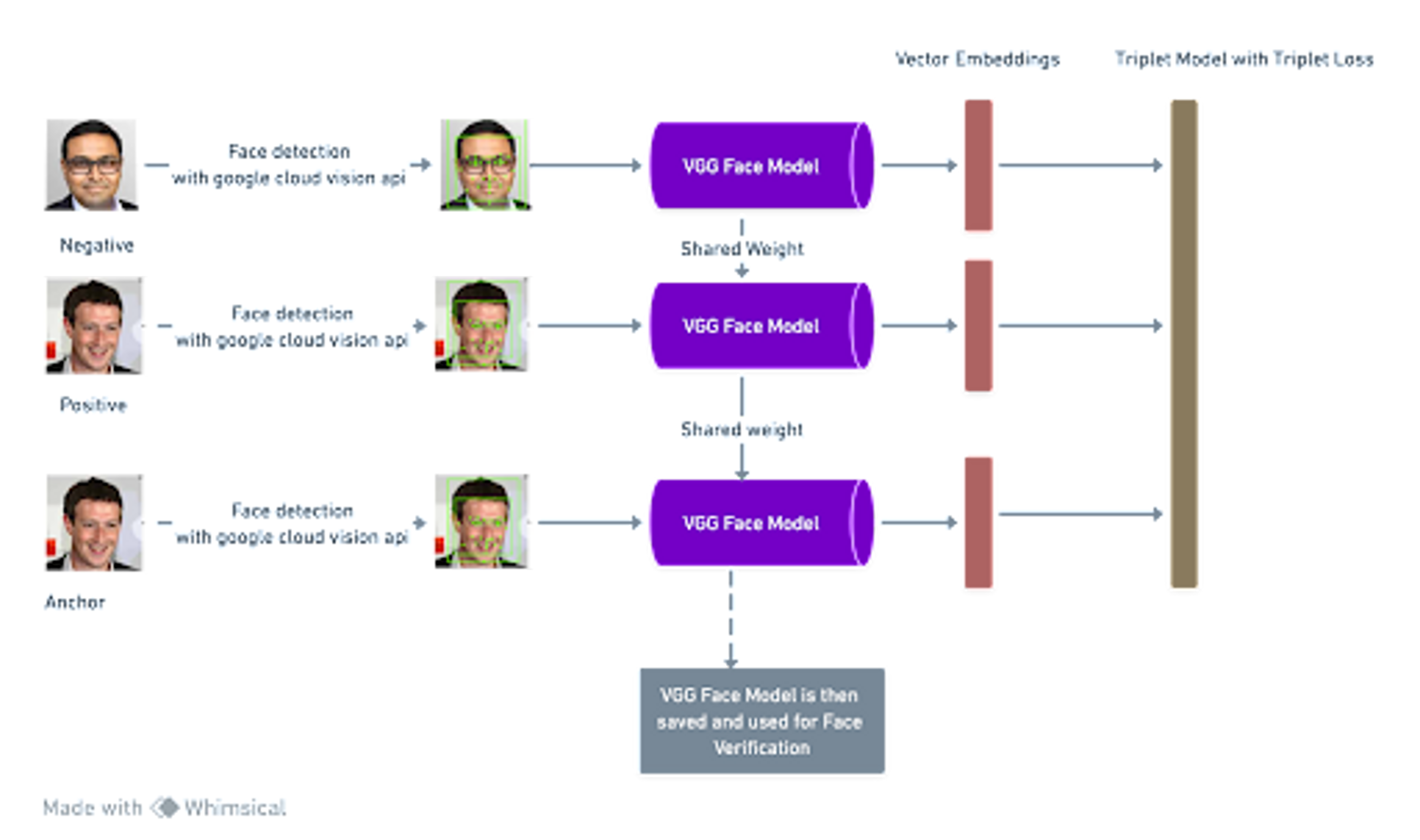 The key to this process is to use a pre-trained VGG Face model and then freeze all layers except the final few layers and subsequently to train the model. The final model is then used for extracting embeddings as seen in Figure 1. This specific technique falls under the umbrella of transfer learning.